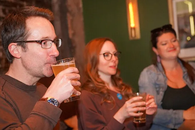 Sua noite inclui paradas guiadas em quatro bares clássicos de Philly na histórica Old City, muitas histórias inéditas do seu guia local especialista e tempo para rir (e talvez dividir pretzels) com outros viajantes pelo caminho.