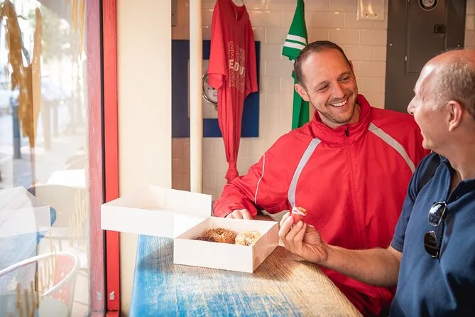 Saímos da sombra da City Hall, com a pedra ainda fresca da manhã, e nosso guia (Matt, nascido e criado aqui) sorriu como se já soubesse que logo estaríamos satisfeitos. A cidade vibrava — buzinas, risadas, o cheiro leve de cebolas vindo de algum lugar — e começamos a caminhar. A primeira parada foi numa esquina onde experimentei um shake de tahine que não parecia nada do que eu esperava (e no bom sentido). Matt brincou que isso “mudaria minha opinião sobre comida vegana” e, sinceramente? Talvez tenha mesmo. Ainda não sei bem o que tinha, mas era cremoso e surpreendentemente refrescante.