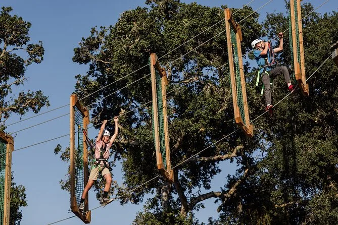 Seu dia inclui o uso de arnês e capacete, além de uma explicação completa de segurança antes de começar a escalar. Guias locais estarão com você durante todo o percurso para ajudar ou incentivar enquanto você enfrenta mais de 80 obstáculos aéreos entre os carvalhos centenários de Santa Barbara.