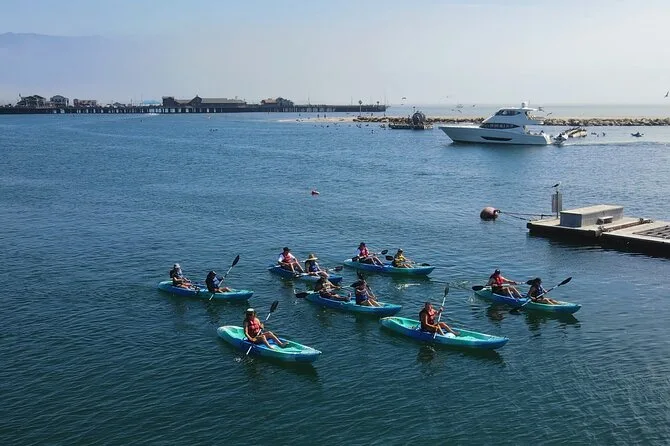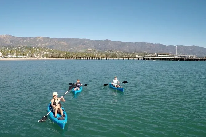 Sua experiência inclui todo o equipamento de caiaque — caiaques, remos, coletes salva-vidas — e a orientação de um guia local experiente que conduz o grupo pelo porto de Santa Barbara no ritmo de vocês. É só chegar pronto para remar; o resto é organizado no local antes de sairmos juntos para a água.
