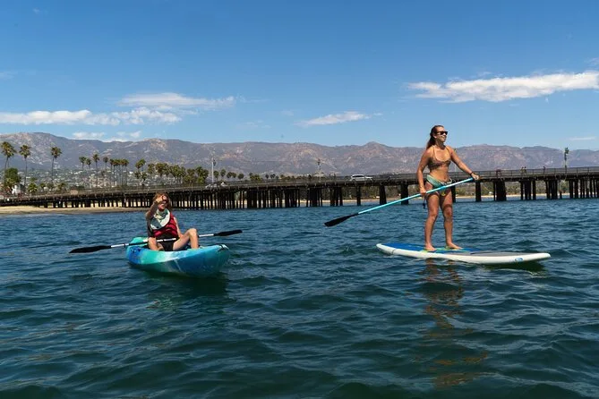 Você vai remar pelas águas calmas do porto de Santa Barbara com um guia local, ver leões marinhos de perto (e talvez golfinhos), aprender curiosidades sobre barcos e montanhas, e sentir a brisa salgada no rosto. Todo o equipamento está incluso — só traga seu maiô, toalha e vontade de explorar. Não é nada complicado ou chique; é só tempo de verdade na água com gente boa.