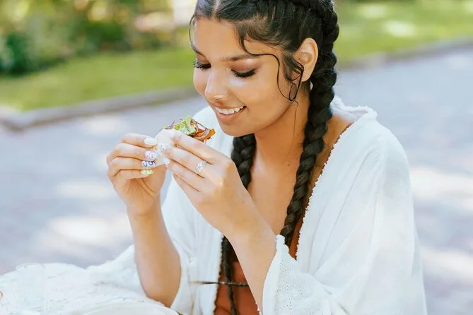 Seu dia inclui degustação de cinco tacos diferentes em taquerias top do centro de Santa Barbara, duas bebidas alcoólicas (margarita, vinho ou cerveja), histórias do guia enquanto caminhamos cerca de 2,5 km — e um cartão-presente especial de lojas locais para você continuar explorando depois.