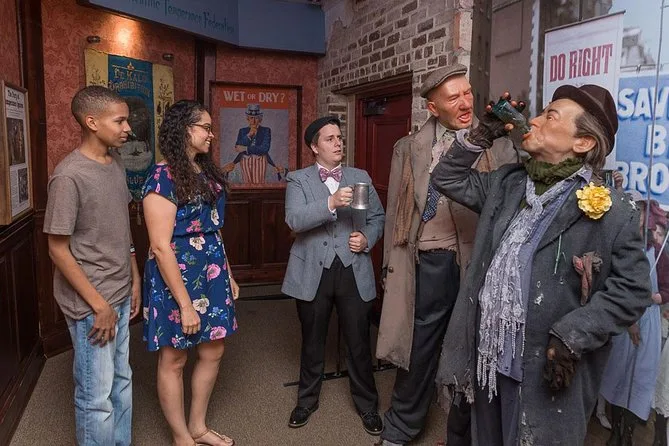 Seu dia inclui entrada para todas as exposições imersivas do Museu da Lei Seca em Savannah. Você pode fazer upgrade para um tour guiado com um especialista local e aproveitar um coquetel ou mocktail fiel à época no speakeasy escondido do museu (com documento válido). Todas as idades são bem-vindas no horário normal; só não esqueça a curiosidade — e o documento se quiser provar os coquetéis.