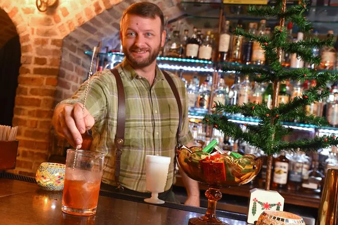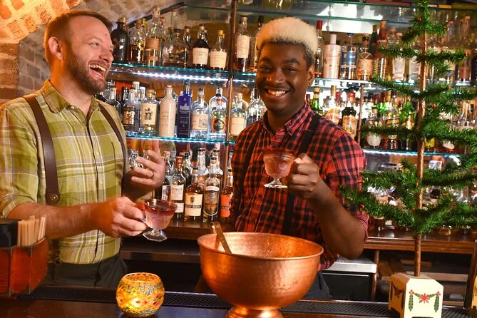 Sua noite inclui traslado do Old Town Trolley Tour Depot, histórias guiadas enquanto passa por casas e praças históricas, entrada no American Prohibition Museum com ponche sem álcool e um docinho no speakeasy, além de tempo para passear pelo City Market decorado para o Natal de Savannah antes de voltar ao ponto inicial.