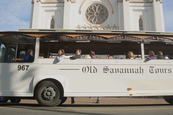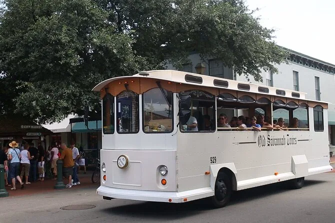 Seu dia inclui 75 minutos a bordo de um trolley clássico aberto com narração ao vivo contínua do seu guia local enquanto passa pelas praças e ruas mais históricas do centro de Savannah—sem paradas ou taxas extras, é só relaxar e aproveitar no seu ritmo.
