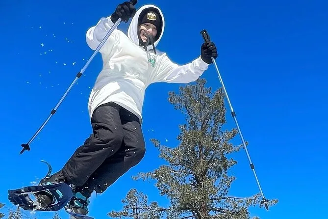 Seu dia inclui raquetes premium, bastões, aulas se precisar — até microcravos caso não tenha neve fresca — e um guia local profissional que vai te levar com segurança por áreas livres de avalanche nos cantos mais tranquilos de South Lake Tahoe.