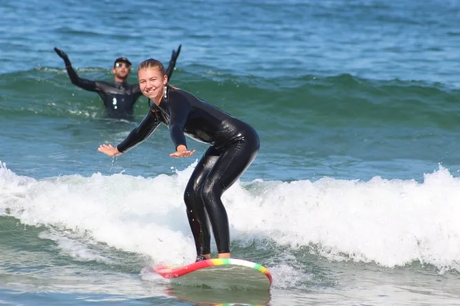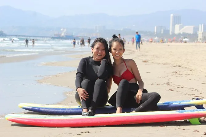 Sua sessão inclui o uso de roupa de neoprene e uma prancha de espuma de 8 ou 9 pés para a aula e o tempo livre de prática após a aula em Venice Beach.