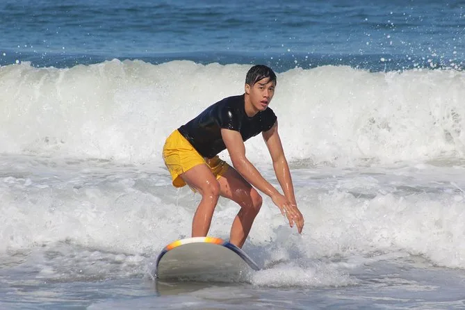Éramos só quatro no grupo, então nunca ficou lotado ou corrido. Diego nos ensinou a ler as ondas (ainda não entendo muito bem), e depois entramos juntos na água. O mar estava mais frio do que eu esperava — um choque que me acordou de vez — mas depois de alguns minutos, parei de sentir. Ele gritava palavras de incentivo por cima do barulho das ondas; em um momento, caí de um jeito tão desajeitado que acabei com água salgada no nariz. Ele riu e disse: “É assim que você sabe que está fazendo certo.”