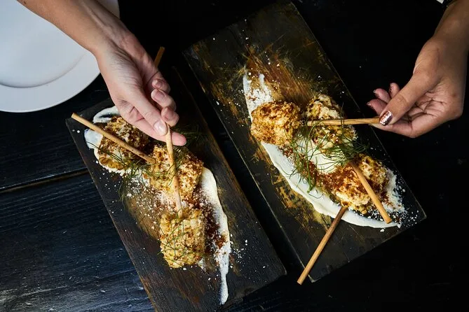 O tour inclui seis degustações: açaí Sambazon, empanada argentina, pedaços de churro waffle, um prato secreto exclusivo, taco crocante de peixe e quesabirria com consomé.