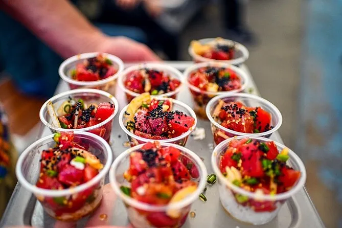 Você vai provar seis delícias diferentes em Venice Beach — de açaí a tacos crocantes de peixe — enquanto seu guia local conta histórias sobre arte de rua, as lendas de Muscle Beach e os canais tranquilos. Prepare-se para dedos grudados, sabores surpreendentes e momentos que ficam na memória muito depois do passeio.