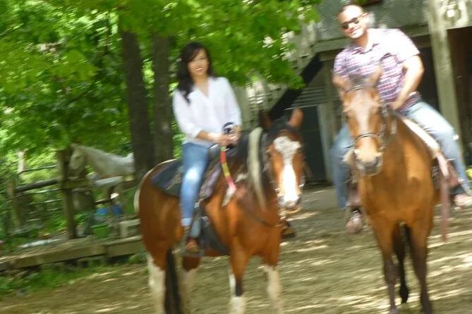 Seu dia inclui transporte no local combinado perto de Atlanta ou Athens (detalhes enviados antes), passeio guiado de 90 minutos a cavalo por trilhas cuidadas com um guia local experiente treinado em primeiros socorros e RCP, seis degustações de vinho em uma vinícola próxima com equipe acolhedora, além de um almoço picnic com peru, pão sírio, hummus, nozes, frutas vermelhas e folhas frescas da fazenda orgânica deles, antes do retorno no fim da tarde.
