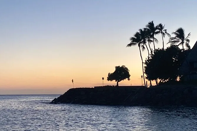 A duração exata não é informada, mas espere um tour no início da noite, cobrindo o pôr do sol em Waikiki até o Diamond Head.