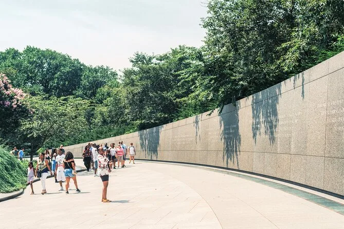 Visitamos tantos lugares nesse tour pelos monumentos de DC que meu celular quase morreu de tanto tirar foto. A Casa Branca foi a próxima parada; a multidão se amontoava na grade, todo mundo tentando aquela foto perfeita. Alguns do grupo tentaram adivinhar qual janela era o Escritório Oval (sem ideia se acertaram). No Memorial Martin Luther King Jr., toquei a pedra — ela estava fria e áspera na minha mão. Teve um momento em que um grupo de escola começou a cantar baixinho perto dali; nada planejado, só crianças sendo crianças. Por algum motivo, foi isso que ficou mais na minha memória do que qualquer discurso ou placa.