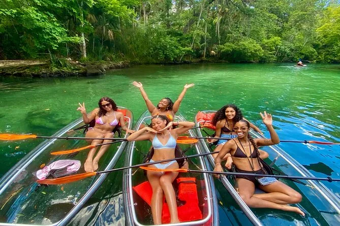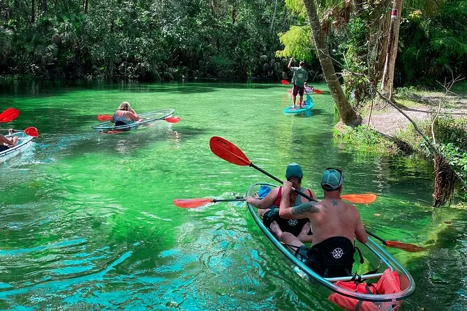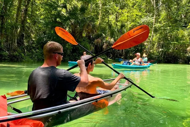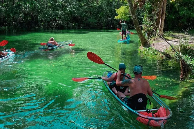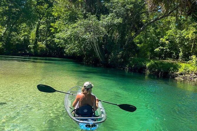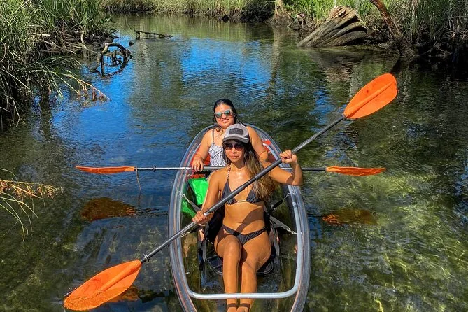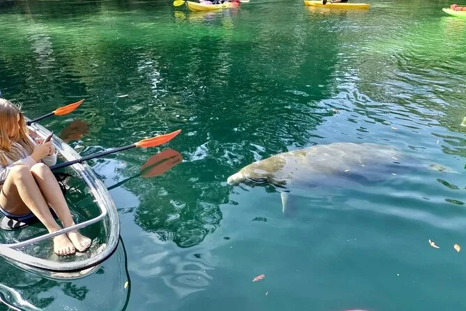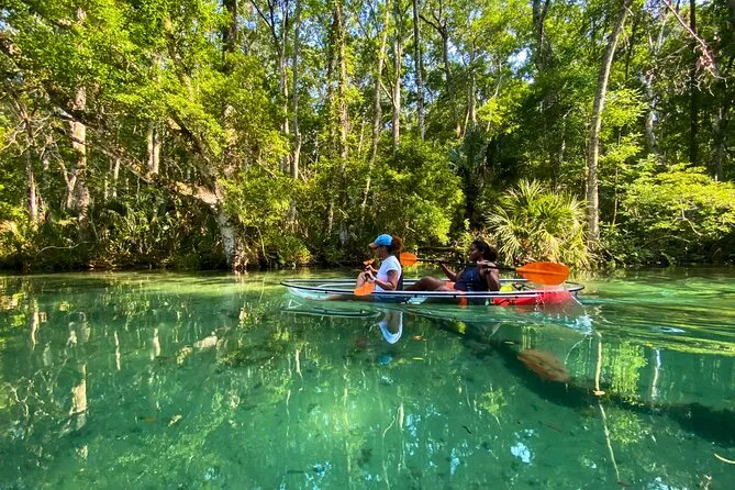 Você vai remar em caiaques transparentes pelas águas cristalinas de Weeki Wachee com um guia local que conhece cada curva do rio. Pode ser que encontre peixes-boi, conte tartarugas e peixes sob seus pés e ouça histórias sobre essas nascentes pelo caminho. Um passeio que mistura aventura leve com momentos que ficam na memória muito depois de secar.