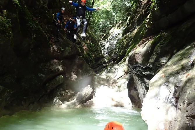 Você vai vestir um traje de neoprene e seguir seu guia local pelo cânion Angon em Annecy — fazendo rapel ao lado de cachoeiras, escorregando em piscinas cristalinas, pulando (ou não) ao longo do caminho. Prepare-se para risadas, respingos gelados e momentos em que o tempo parece parar entre pedras cobertas de musgo e raios de sol. Fotos estão incluídas para você reviver cada careta ou sorriso de vitória.