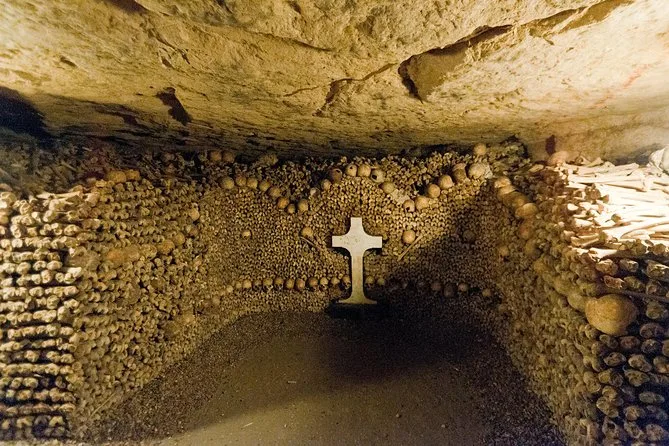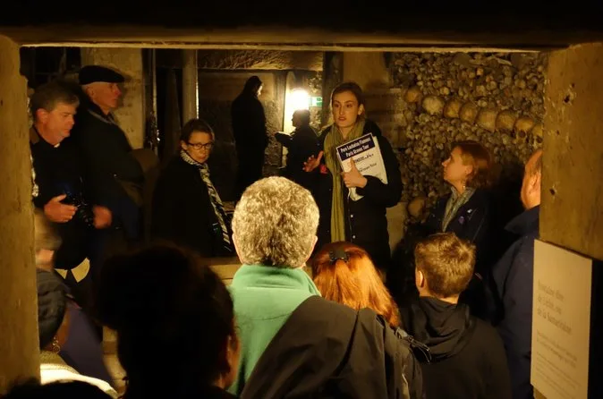 Sua experiência inclui entrada sem fila nas Catacumbas de Paris com um guia especialista em inglês, conduzindo seu grupo pequeno por galerias públicas e áreas restritas normalmente fechadas — como o Túmulo de Gilbert e a Galeria Port Mahon — com todas as taxas inclusas para você curtir o passeio sem preocupações.
