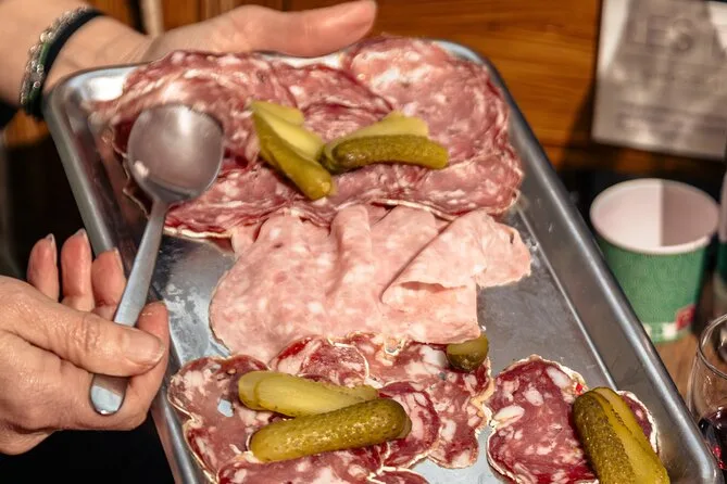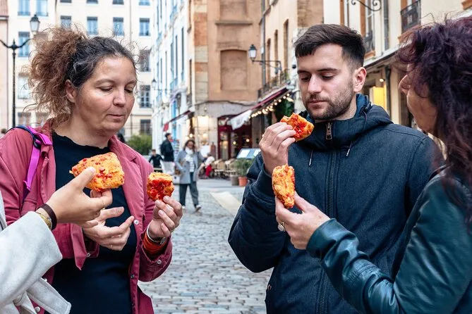 Sua noite inclui água em todas as paradas, generosas degustações de especialidades regionais (suficiente para uma refeição completa em quatro locais), pelo menos uma bebida alcoólica para adultos, como vinho local ou digestivo, além de histórias animadas do guia enquanto exploram juntos os cantinhos mais charmosos de Vieux Lyon.