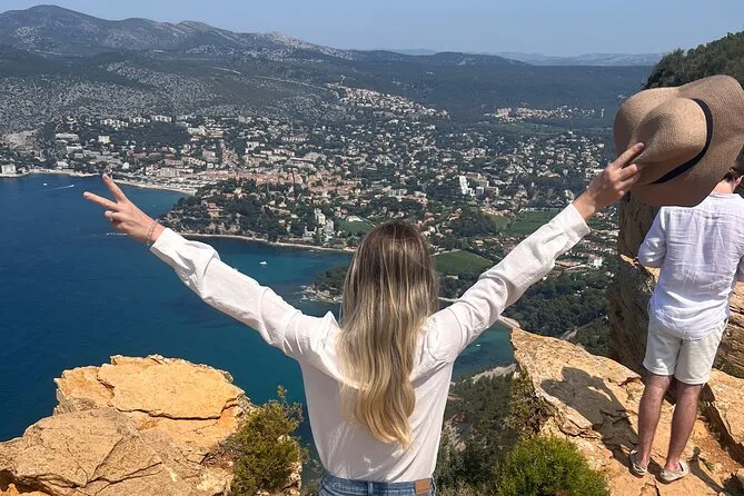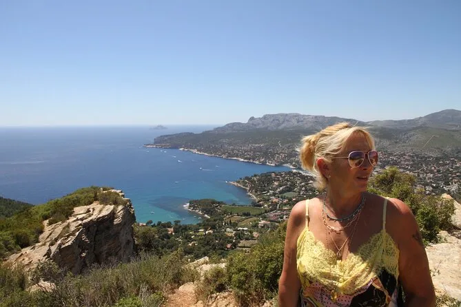 Você verá a Corniche Kennedy, Vallon des Auffes, as falésias do Cap Canaille, as vistas das Calanques e o porto de Cassis.