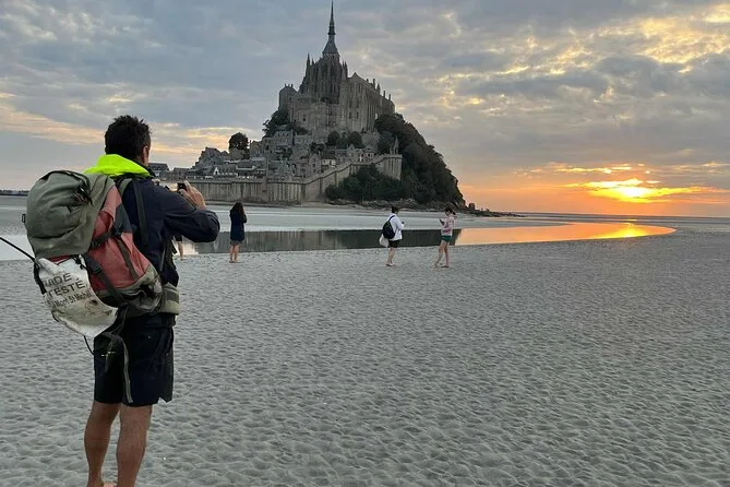 Seu dia inclui uma caminhada guiada de 3 horas, começando na base do Mont Saint-Michel, atravessando as planícies arenosas até a Ilha de Tombelaine, com tempo para fotos e histórias ao longo do caminho, tudo conduzido por um guia local especialista.
