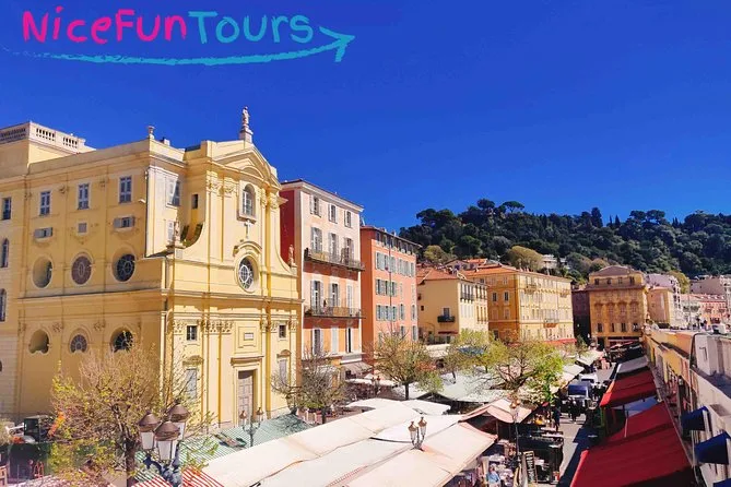 O roteiro inclui Place Masséna, Mercado de Flores do Cours Saleya, Centro Histórico (Vieux Nice) e Colina do Castelo.