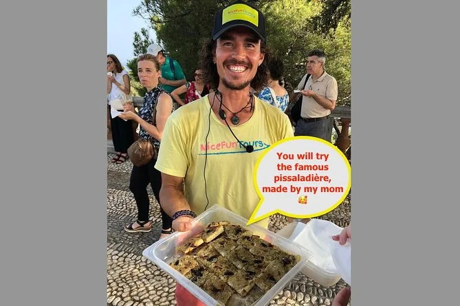 Seu dia começa com um encontro fácil perto da Place Masséna com um guia local nascido em Nice; passeios pelas ruas animadas do Centro Histórico; degustação da tradicional pissaladière no Mercado de Flores do Cours Saleya; histórias durante a subida da Colina do Castelo; além de várias dicas para você saber onde comer depois do passeio.