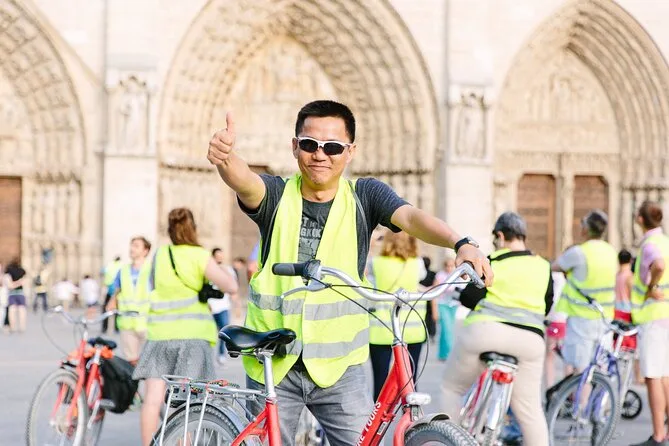 Seu passeio inclui o uso de bicicleta e capacete durante toda a rota com um grupo pequeno (até 16 pessoas) guiado por um local experiente; você vai parar em pontos principais como Notre Dame e Torre Eiffel para fotos e histórias antes de voltar ao centro de Paris — só lembre que não há parada para jantar no caminho.