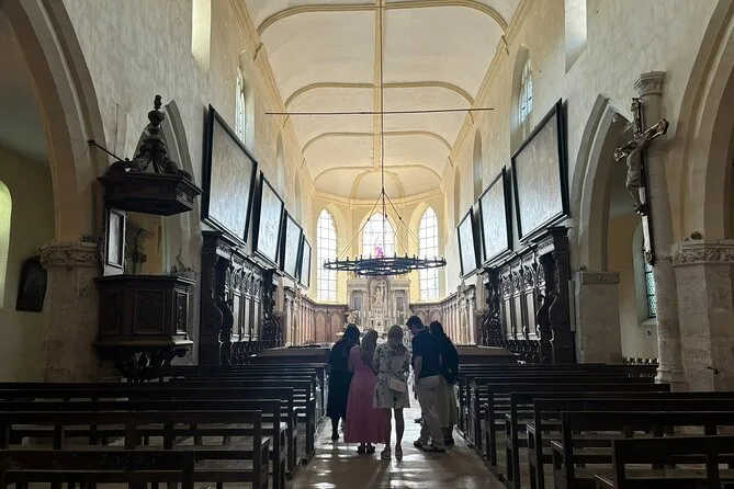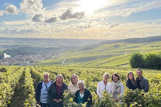 Seu dia inclui transporte com ar-condicionado saindo da estação de trem de Reims ou Epernay, acompanhado por um guia local que fala inglês. Você vai provar cinco taças de Champagne em diferentes vinícolas — incluindo caves familiares — desfrutar de um almoço francês com Champagnes harmonizados (basta avisar sobre restrições alimentares na reserva), passear pela vila e vinhedos de Hautvillers e voltar com conforto ao ponto de partida no fim da tarde.