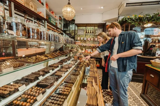 Sua manhã ou tarde inclui mais de seis degustações doces — pain au chocolat direto do forno de uma padaria premiada, bolos sazonais num salão de chá familiar, chocolates feitos na hora por chocolatiers apaixonados no centro de Paris, crêpes tradicionais da Bretanha com cidra (sim!) e macarons criativos numa pâtisserie moderna. Tudo guiado por um especialista local que fala inglês, enquanto você caminha cerca de 1 milha pelas históricas passagens cobertas — tudo em grupo pequeno para facilitar a conversa e garantir muitas risadas.
