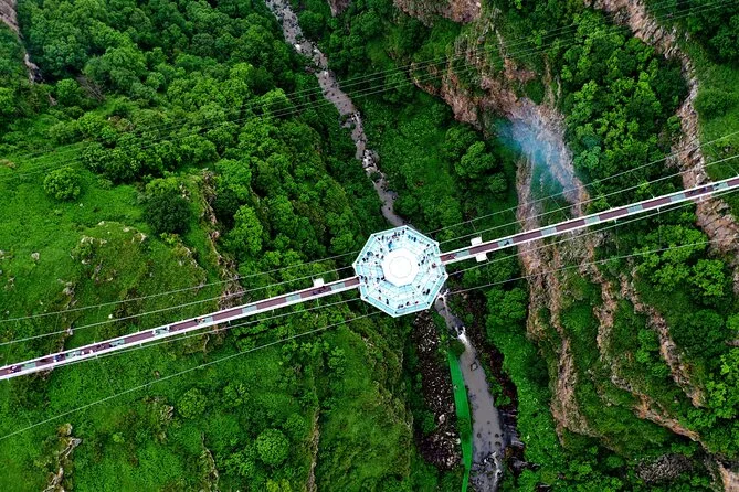 Você vai atravessar a famosa ponte de vidro do Canyon Dashbashi com um guia local, provar mel fresquinho da vila, e ainda terá tempo para fazer a trilha até as cachoeiras ou explorar as vilas próximas antes de voltar para Tbilisi no fim do dia. Prepare-se para surpresas — do vento cortante do canyon às risadas silenciosas com os dedos grudados de mel.