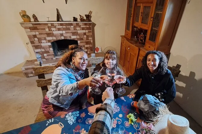 Seu dia inclui transporte privado com retirada e retorno ao hotel em Tbilisi, visitas guiadas a vinícolas familiares com degustação de vinhos locais e chacha, participação na fabricação de pão e degustação de queijos numa padaria da vila, entrada em Sighnaghi e no Convento de Bodbe, WiFi no veículo para compartilhar fotos na hora — e um generoso almoço caseiro servido pelos anfitriões antes do retorno confortável.