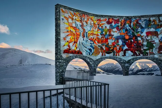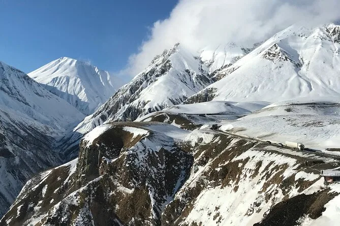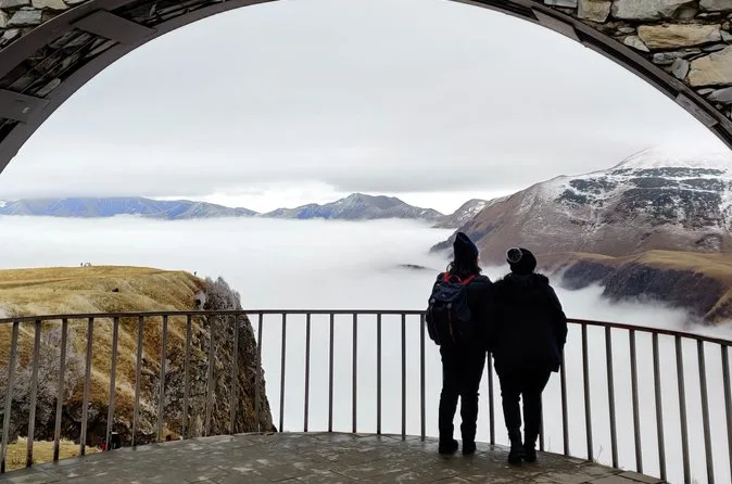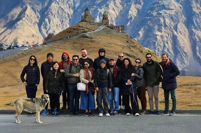 O passeio dura o dia todo, com paradas na Fortaleza de Ananuri, Gudauri e Kazbegi, retornando a Tbilisi à noite.