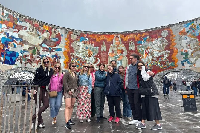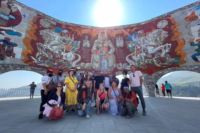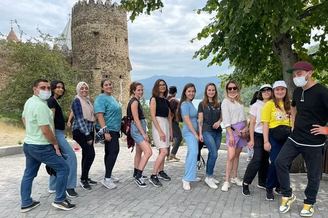 Junte-se a outros viajantes para um dia inteiro explorando as Montanhas do Cáucaso na Geórgia — lagos azuis no Reservatório Jinvali, pedras antigas na Fortaleza Ananuri, almoço ao ar livre com khinkali e vistas incríveis da Igreja da Santíssima Trindade de Gergeti, acima da vila de Kazbegi. Espere risadas na estrada e momentos de admiração nas montanhas — aqui você não só conhece, você sente a Geórgia na pele.