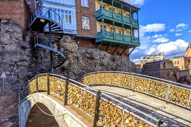 O passeio de teleférico até a Fortaleza de Narikala está incluído; há opções de transporte público próximas para chegar e sair.