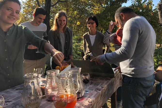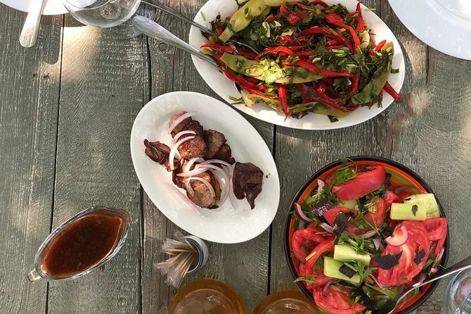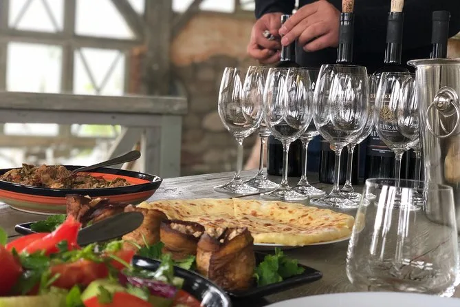 Você vai provar vinhos georgianos de verdade direto das adegas antigas em Kakheti, rir com os locais enquanto saboreia queijos caseiros e chacha, caminhar por vinhedos iluminados pelo sol com seu guia e sentar para um almoço fresco sob as árvores. Não é só riscar lugares da lista — é se sentir em casa em cada mesa.