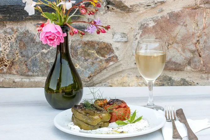 Sim, o almoço com sabores cretenses e vinho ou cerveja está incluído em restaurante selecionado à beira da praia.