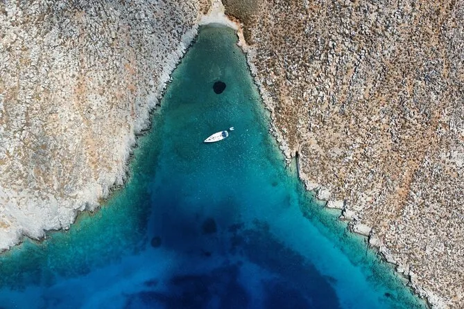 Seu dia inclui traslado gratuito para hotéis num raio de 10 km do porto de Heraklion, equipe local certificada para guiar o passeio, todo o equipamento de segurança, snorkel e pranchas de stand up paddle se quiser usar. Bebidas à vontade — água, refrigerantes e vinho — e um almoço orgânico cretense fresquinho servido a bordo antes de voltar para a cidade à tarde.