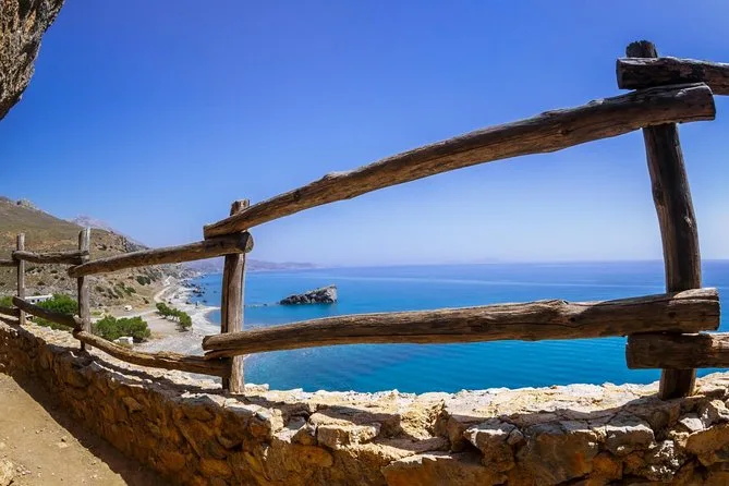 Seu dia inclui traslado de hotel ou porto em Rethymno em Land Rover, com um guia motorista simpático que vai te levar pelo sul de Creta. Todos os custos de combustível e impostos locais estão cobertos. Você vai fazer uma parada para um almoço cretense completo de 3 pratos—com vinho local à vontade e bastante água mineral—antes de voltar à noite.