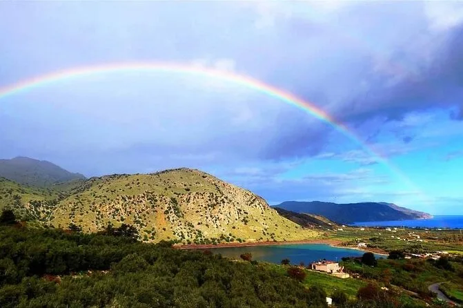 O passeio é um dia inteiro com várias paradas, incluindo Lago Kournas, Montanhas Brancas, mirante do Desfiladeiro de Imbros e mais.