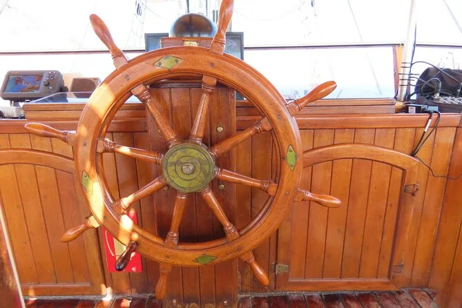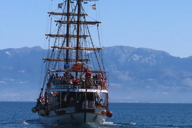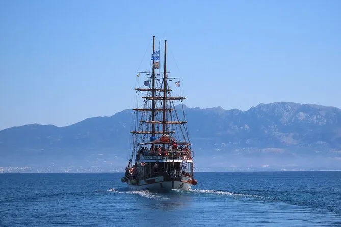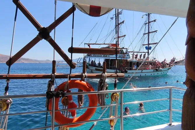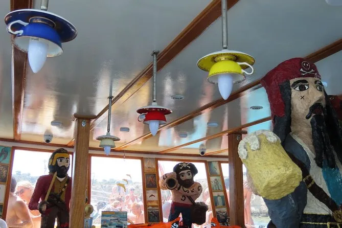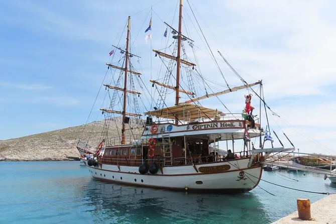 Subimos no velho convés de madeira do Capitão Hook justo quando o sol começava a esquentar o porto de Kos. A madeira era lisa sob minhas sandálias — dava para sentir o cheiro de sal e protetor solar no ar. O guia nos entregou um celular para o áudio tour (que eu tentei usar várias vezes sem sucesso), mas, na real, eu só queria ouvir o som do mar e as conversas das pessoas se acomodando nas espreguiçadeiras. O motor fazia um ronco baixo enquanto nos afastávamos, e logo estávamos cercados por um azul infinito. Alguém apontou golfinhos perto das fazendas de peixe em Kalymnos — quase perdi de vista porque estava tentando não derrubar meu café. Mas sim, conseguimos vê-los por uns segundos.