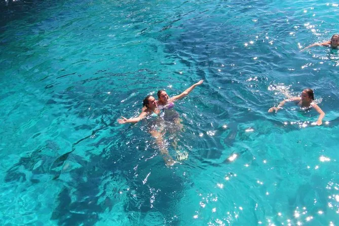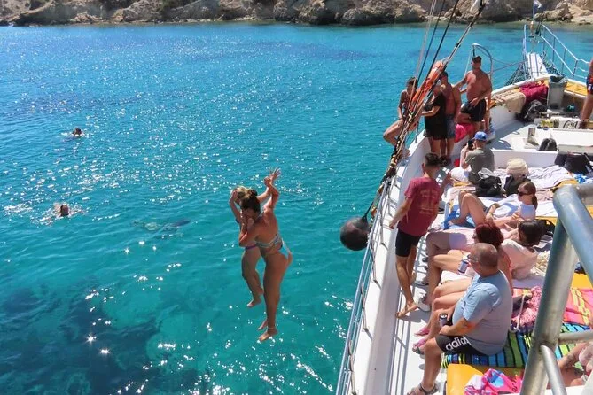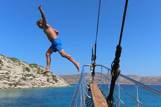 Sim, há paradas para banho e também oportunidade para pular de penhascos na ilha de Platy.