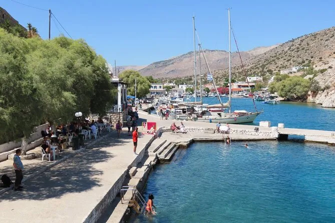 O passeio dura praticamente o dia todo, com várias paradas em Kalymnos (Vathy), Platy e Pserimos antes de voltar ao porto de Kos.