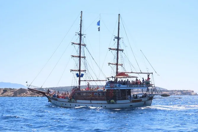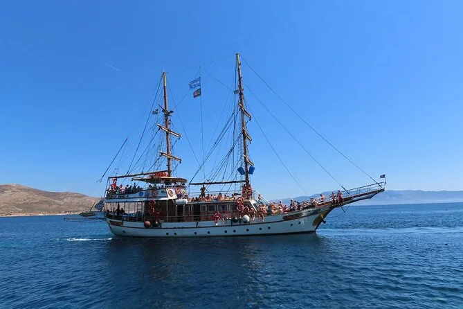 Embarque num iate clássico de madeira em Kos para um cruzeiro por três ilhas com observação de golfinhos perto de Kalymnos, suco de laranja e mel fresquinhos em Vathy, banho nas praias cristalinas de Platy e almoço tradicional grego servido no convés. Risadas com locais e momentos de paz em capelas escondidas — um passeio para voltar com o corpo aquecido pelo sol e o sorriso no rosto.