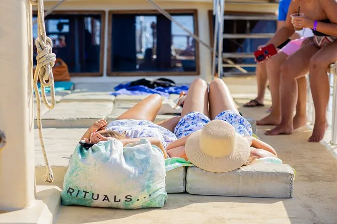 O dia inclui busca opcional no hotel em Kos ou regiões próximas, todas as taxas e entradas pagas, uso do equipamento de snorkel a bordo e WiFi durante o passeio. Um almoço fresco é servido no barco — opção vegetariana disponível se avisar antes — e há lounge com ar-condicionado e banheiros no convés para seu conforto entre as ilhas.