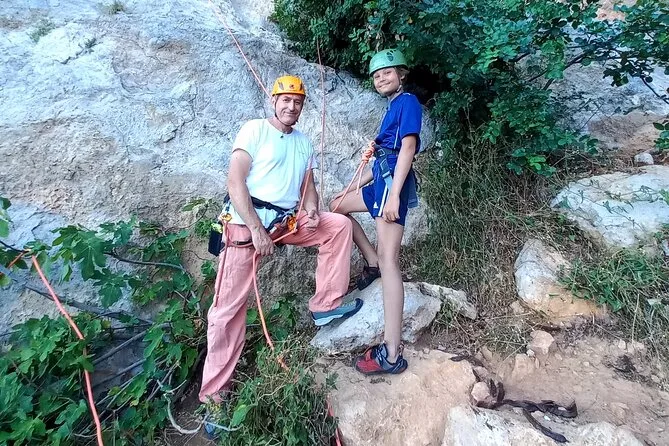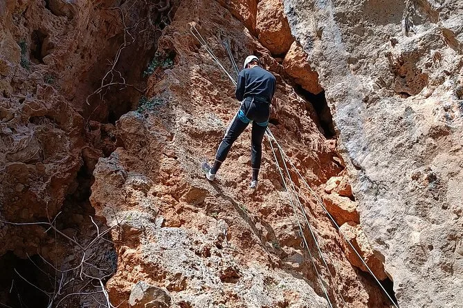 A aula dura cerca de 4 horas nas falésias vermelhas de Leonidio.