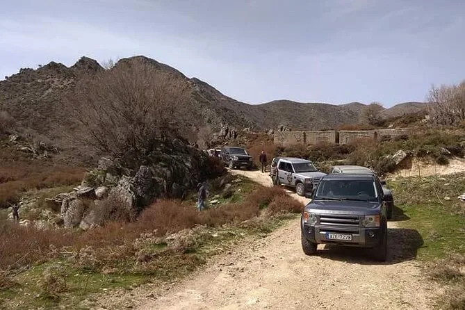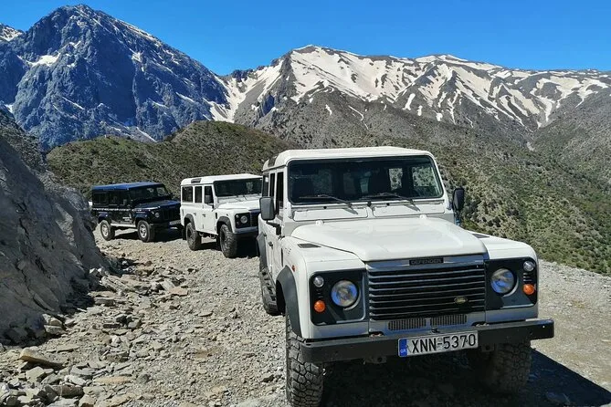 Você vai explorar as Montanhas Brancas de Creta em um veículo off-road com guia local, fazer paradas para café em vilarejos e provar queijo graviera com pastores na cabana Mitato. Termine com um almoço tradicional em Therisso antes de voltar para Chania — comida de verdade, ar puro da montanha e momentos que ficam na memória.