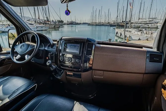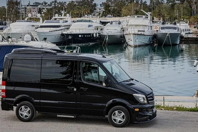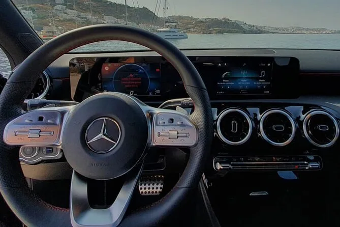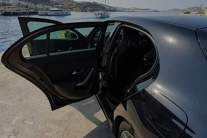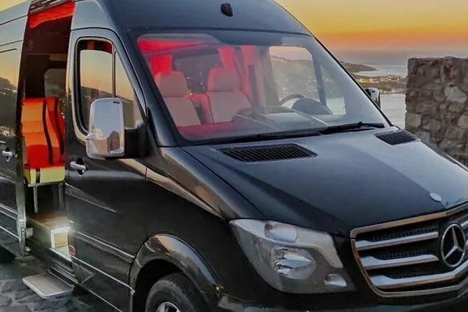 Seu transfer inclui transporte privado em veículo com ar-condicionado, retirada direta no aeroporto ou porto de Mykonos por um motorista local; ajuda com as malas; e opções como cadeirinhas para bebês, se precisar — para você só relaxar e curtir o caminho até seu hotel ou villa.
