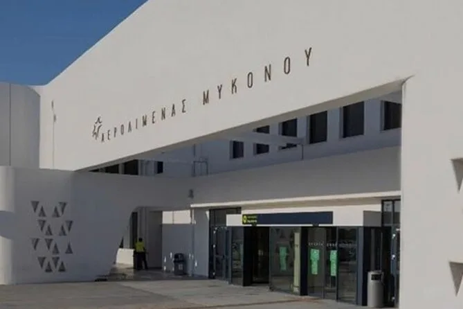 Sim, a retirada pode ser feita no aeroporto ou no porto de Mykonos.