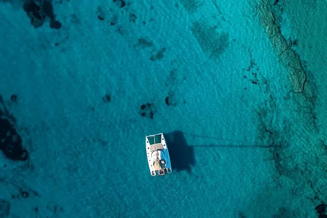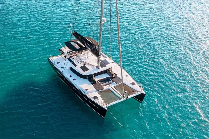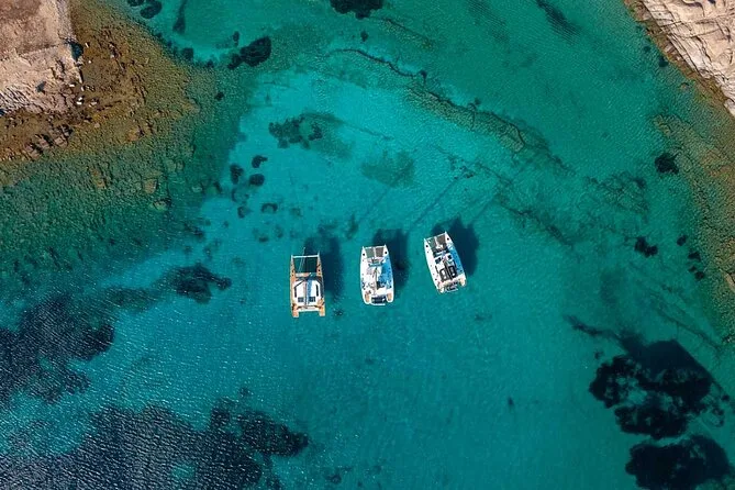 Você vai navegar de Mykonos passando pelas ilhas de Delos e Rhenia num catamarã pequeno, mergulhar em enseadas tranquilas e provar uma refeição de oito sabores feita na hora a bordo (com frutos do mar). Com open bar e uma equipe local amigável guiando pelas águas turquesa, espere momentos relaxantes e surpreendentemente íntimos.