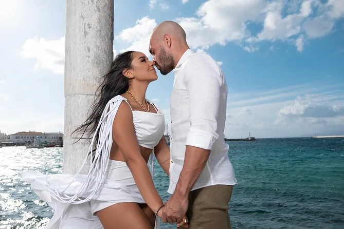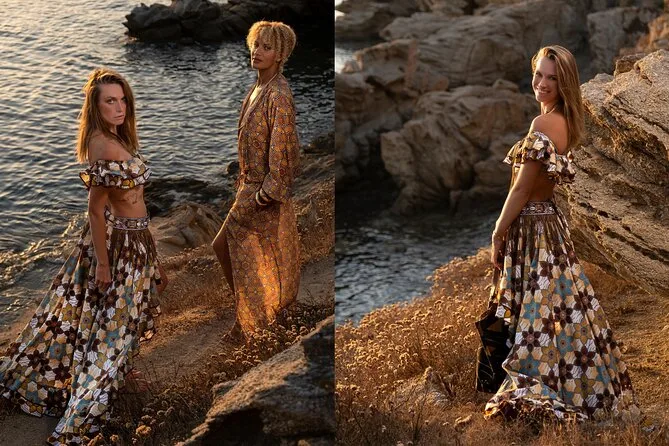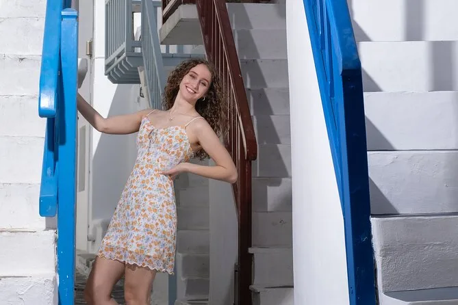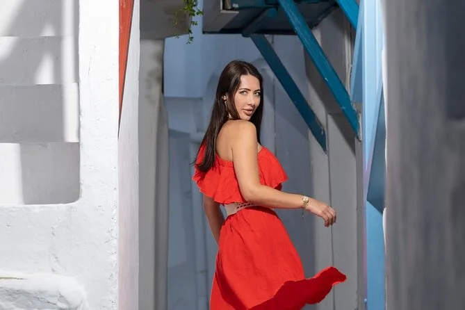 Sua experiência inclui um tour a pé privado por Mykonos com os guias locais Ioanna e George, fotografia profissional com equipamento Fujifilm XT3 (com iluminação), dicas de poses se quiser, e pelo menos 50 fotos digitais editadas entregues online em até dois dias após a sessão.