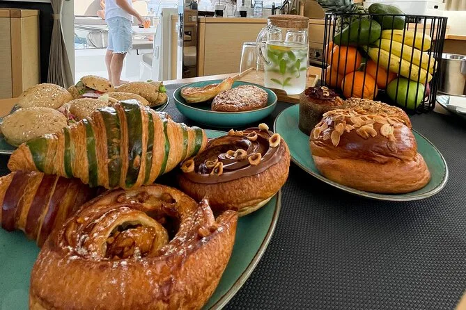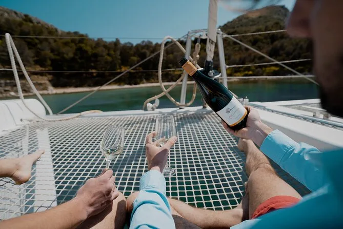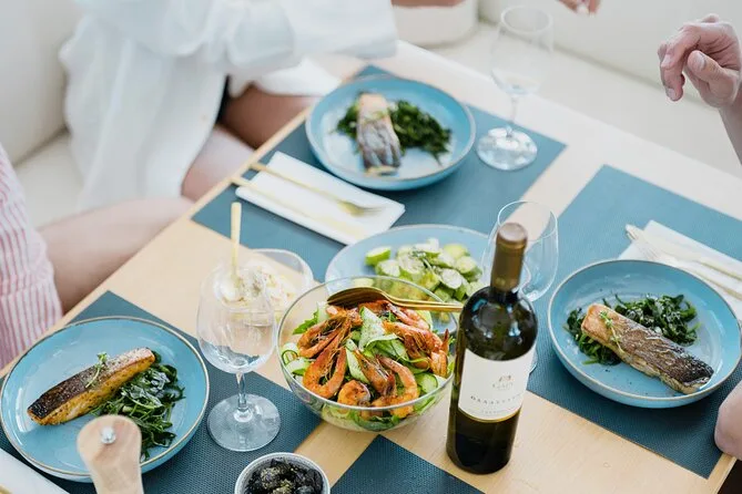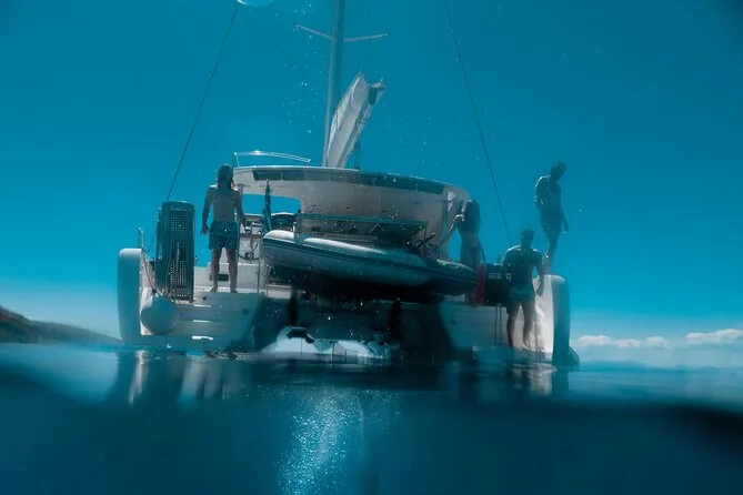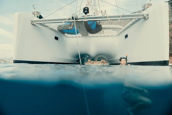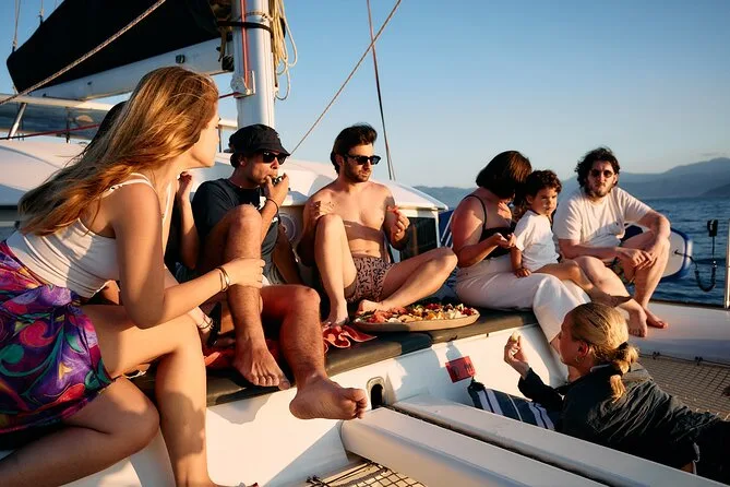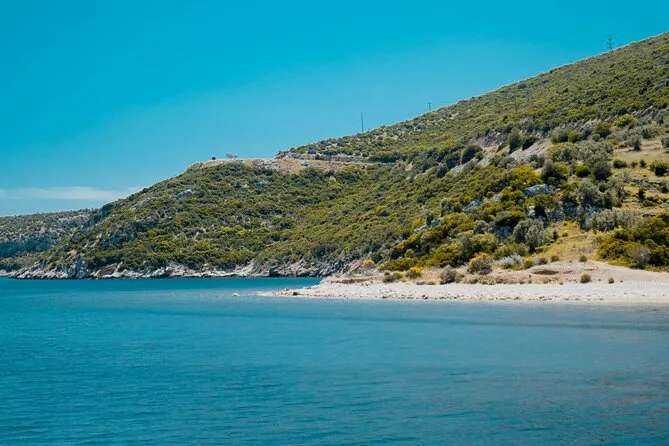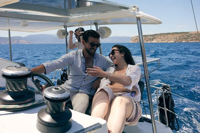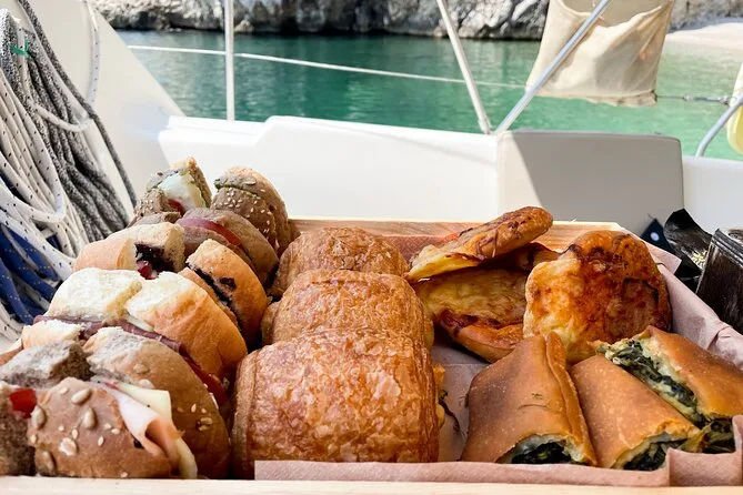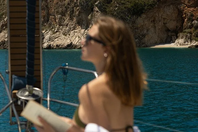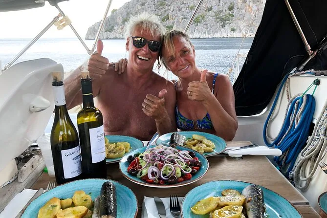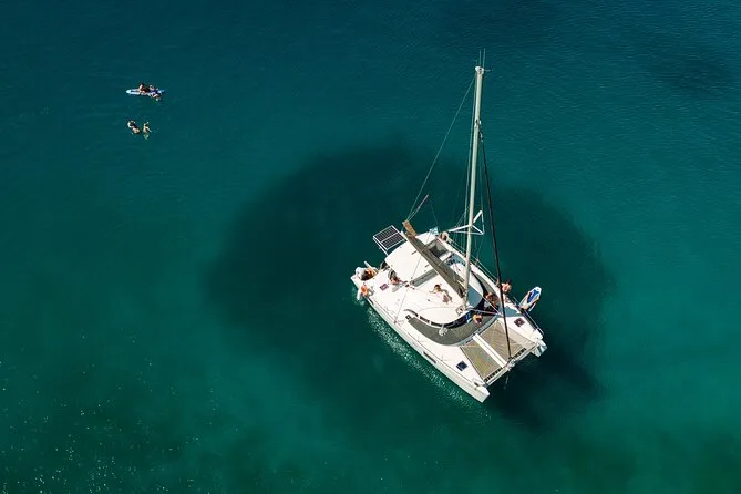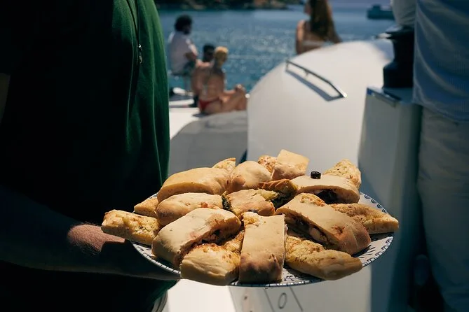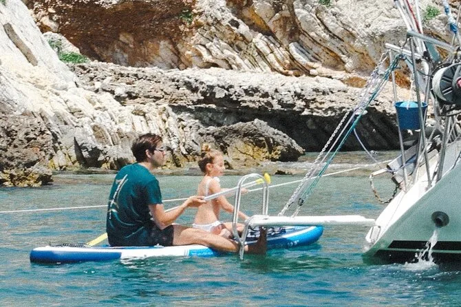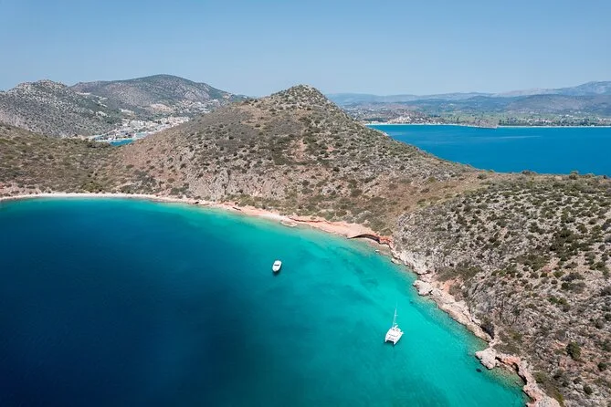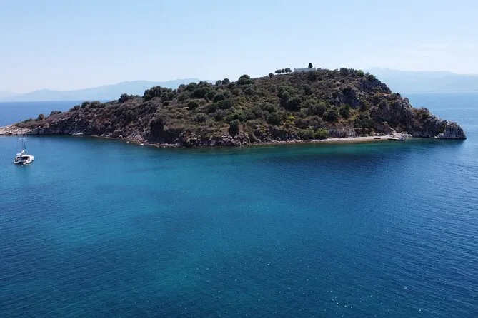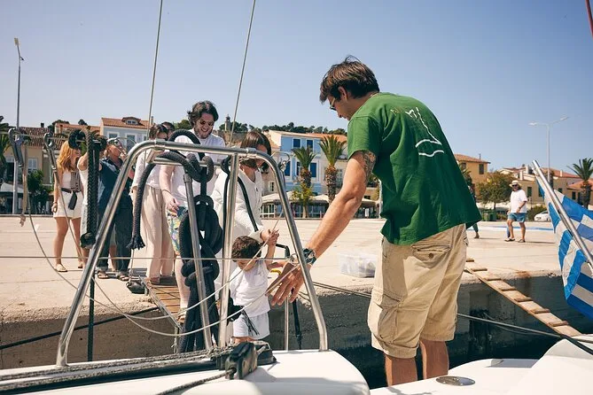Seu dia inclui navegação semi-privada saindo do porto de Nafplio com um skipper experiente, paradas para nadar perto das ilhas Romvi e Daskalio, tortas e sanduíches gregos servidos a bordo junto com vinhos de Nemea e frutas frescas da estação ou sobremesa; além do uso de equipamento para snorkel e prancha de SUP antes do retorno à cidade à tarde ou à noite.
